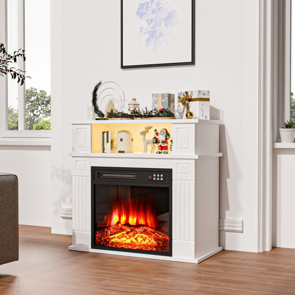Compact & Versatile Dimensions: Measuring 28.35”(L) x 13.74”(W) x 29.13”(H) (overall), with the fireplace insert at 18”(L) x 17.6”(H), it fits snugly in living rooms, bedrooms, or offices. Its compact size allows flexible placement against walls, complementing various decor styles.