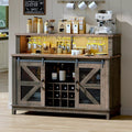 [Stylish LED Lighting]: The Farmhouse Coffee Bar Cabinet features an integrated RGB LED light strip, controllable via a mobile app and remote, offering 60,000 color options with adjustable brightness, modes, and music synchronization, perfect for creating a vibrant atmosphere during tastings and gatherings.