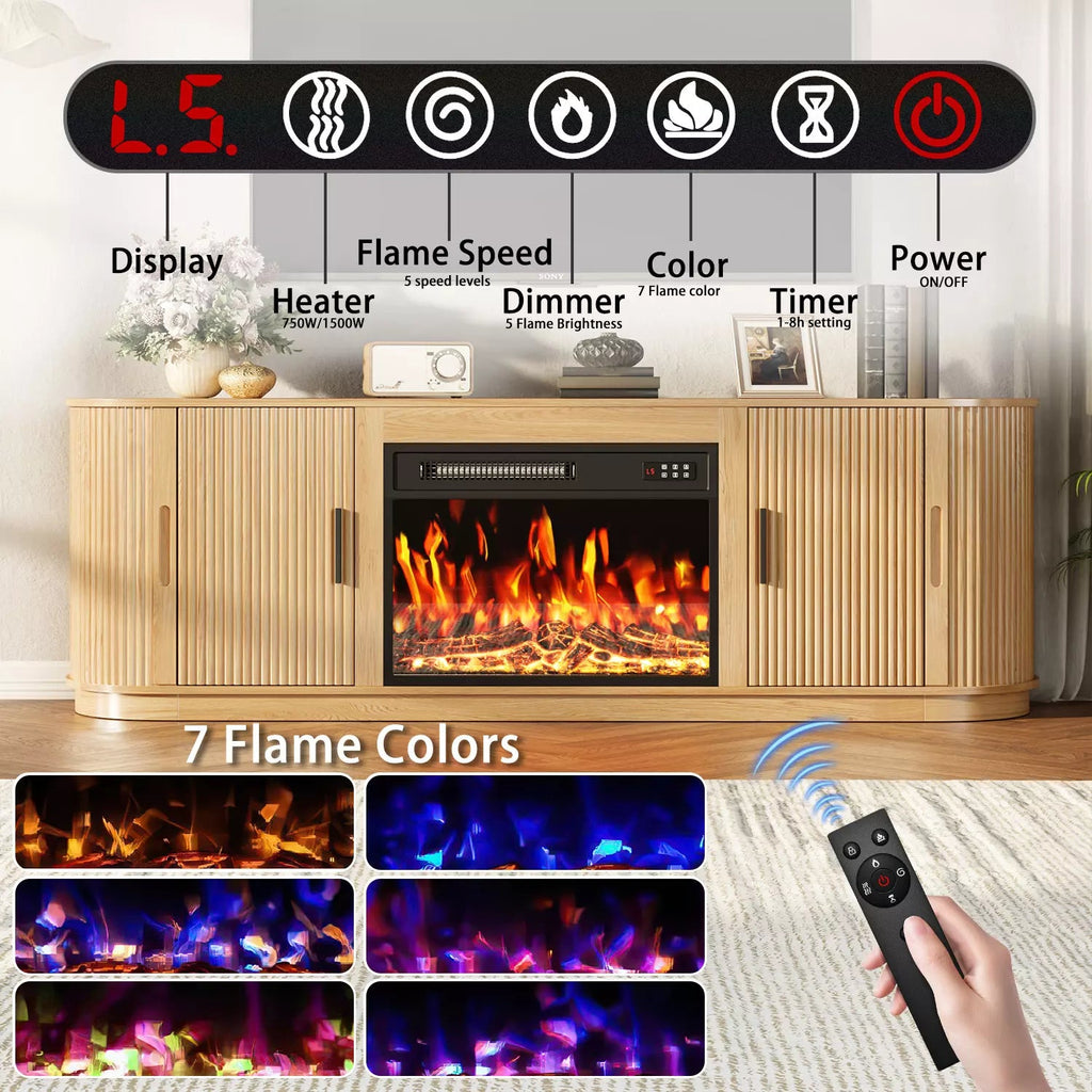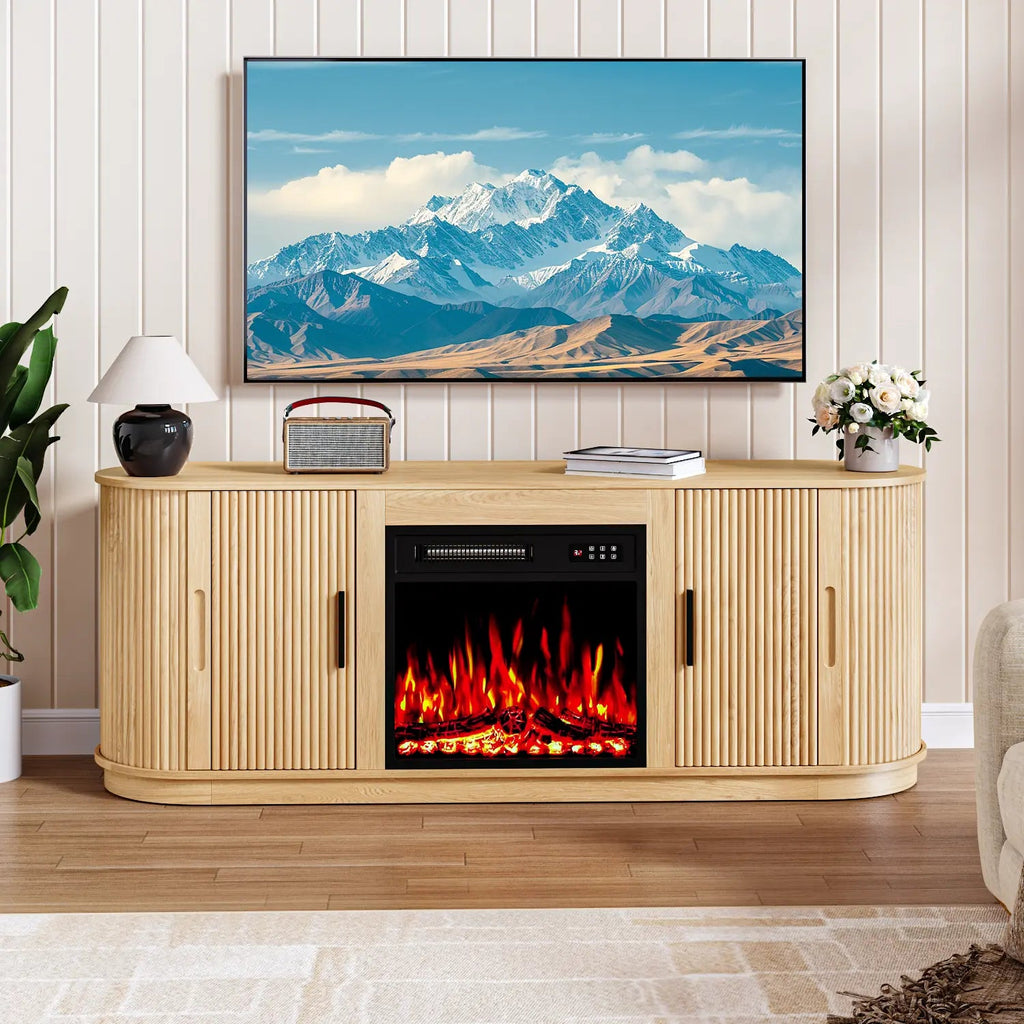 Sliding Doors with Integrated Storage: This fireplace TV stand features two elegant side doors that slide smoothly and silently, ensuring secure operation while concealing expansive storage to maintain a perfectly stylish, clutter-free space
