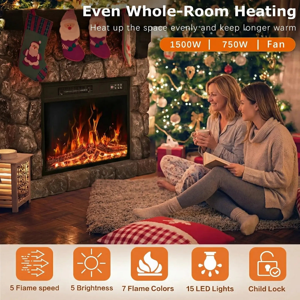Realistic Flame Effect: This fireplace can be used with or without heat and features 3D realistic flame effects, which is the perfect addition to your living room or dining area. 7 flame colors ,5 flame speeds and 5 flame brightness . The magnificent effect can be operated with or without heat ,giving your room a dreamlike ambiance