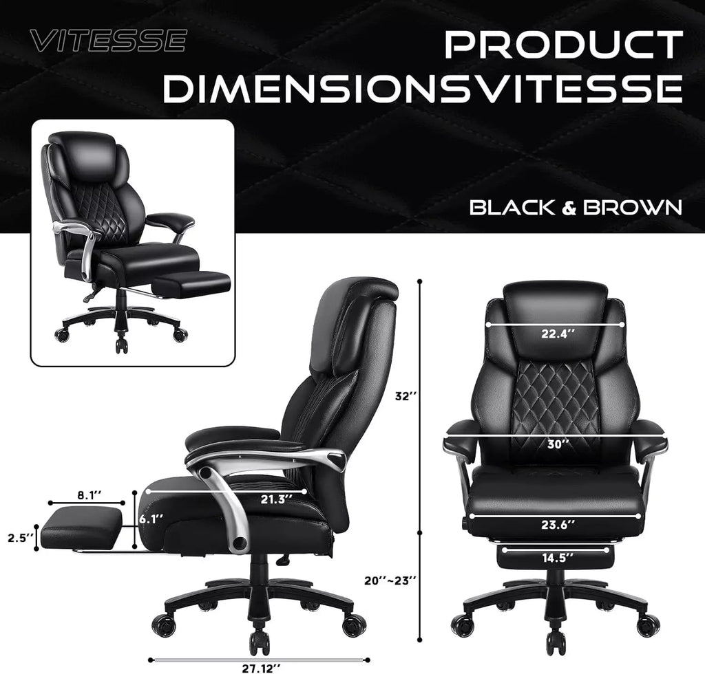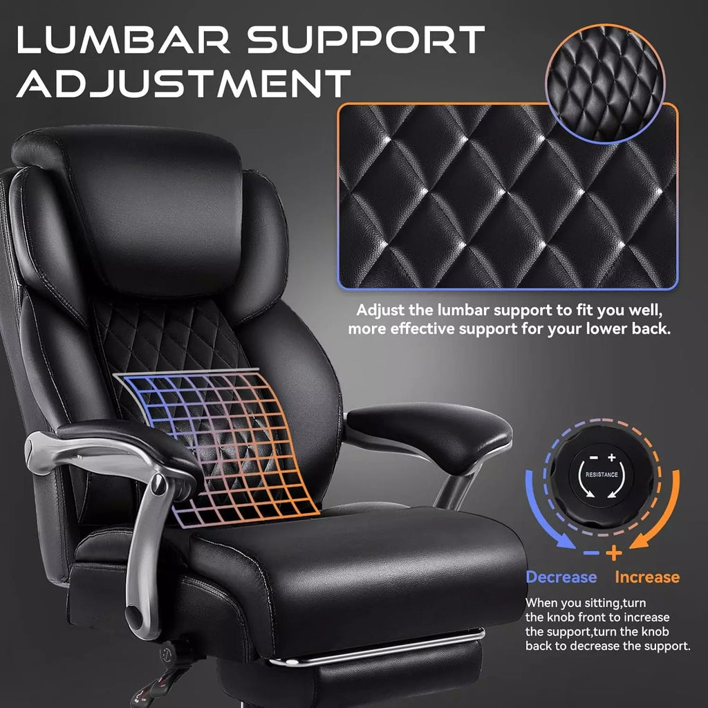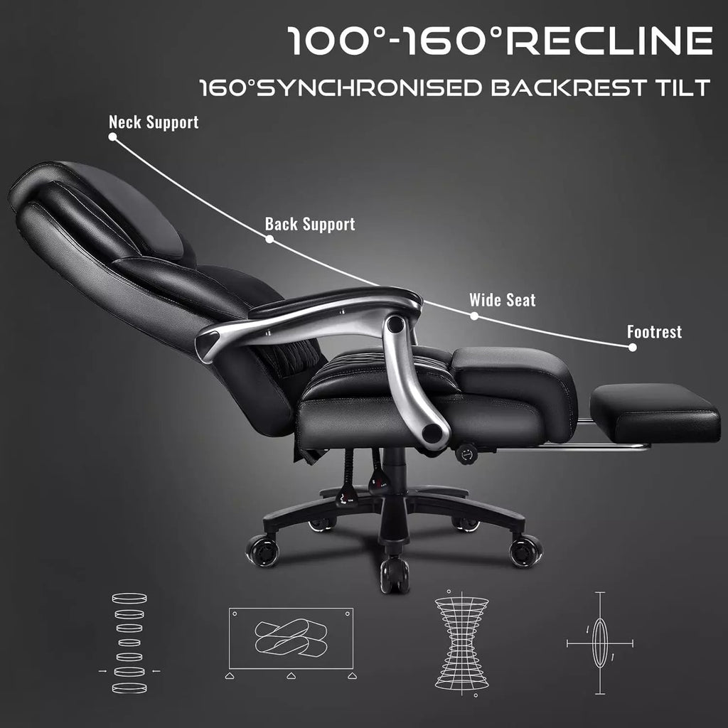 【Comfortable Reclining Space in Office Chair for Heavy People】- Our office chair for heavy people offers a full reclining experience with an extended headrest, linked armrests, and a footrest extension. This creates a perfect lounging position for ultimate relaxation, making it an ideal executive chair for those who need a break from their busy day.