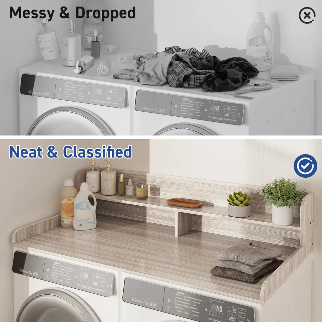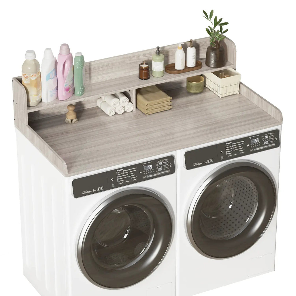 Waleaf 2-Tier Modern Washer Dryer Countertop with Shelf, 54" Laundry Topper for Folding & Storage, Universal Fit