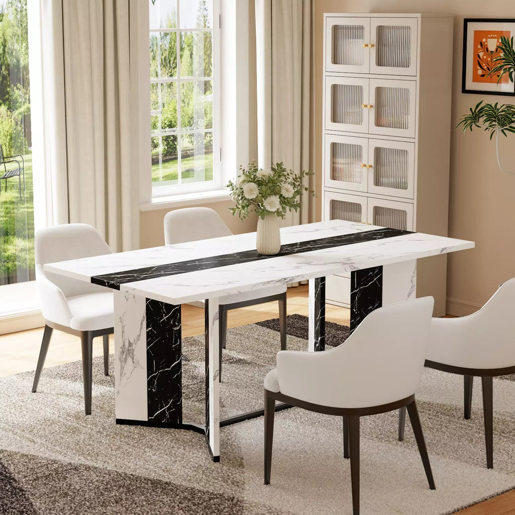 Waleaf 71 inch Modern White Rectangle Dining Table for 6, Waterproof Tabletop & Reinforced V-Shape Base for Kitchen Living Room