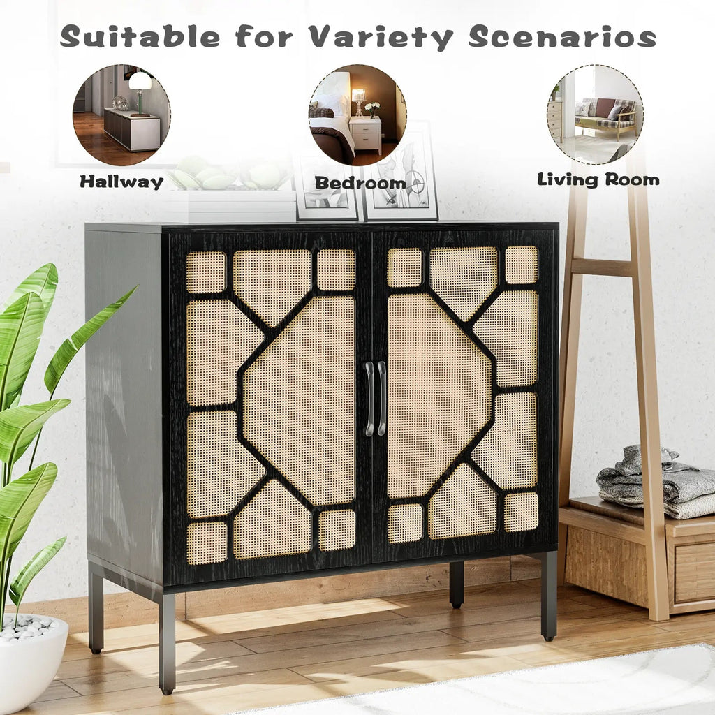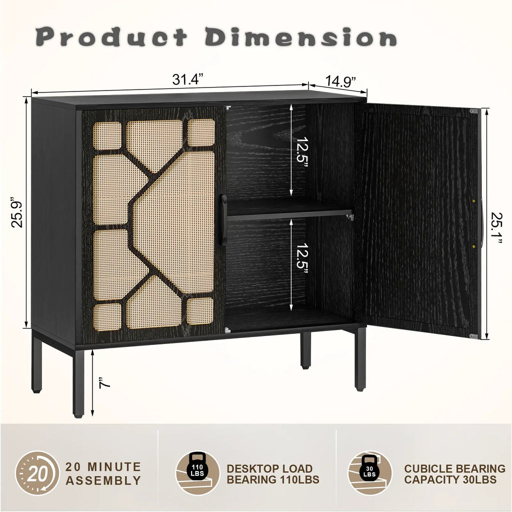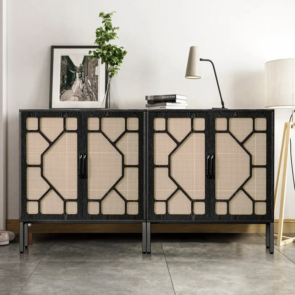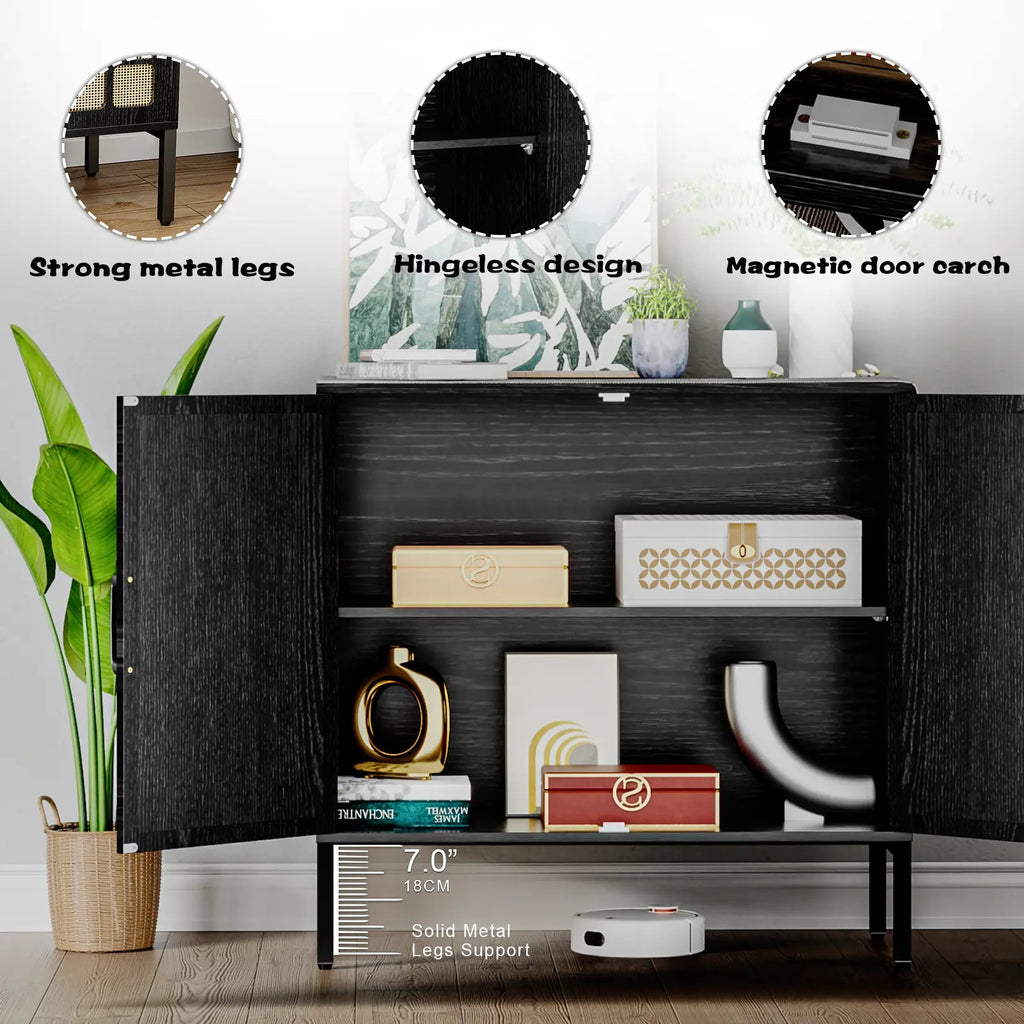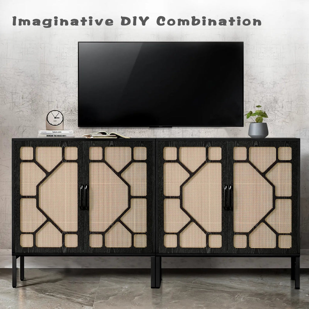 【Multi-purpose Cabinet】The multifunctional storage cabinet can meet your various storage needs and can be used as a dining room or kitchen sideboard or buffet sideboard. The waterproof paint on the surface of the cabinet with natural rattan decorated doors can effectively prevent moisture, which is not only suitable for various styles of home decoration, but also adds a touch of unadorned elegance to your space.